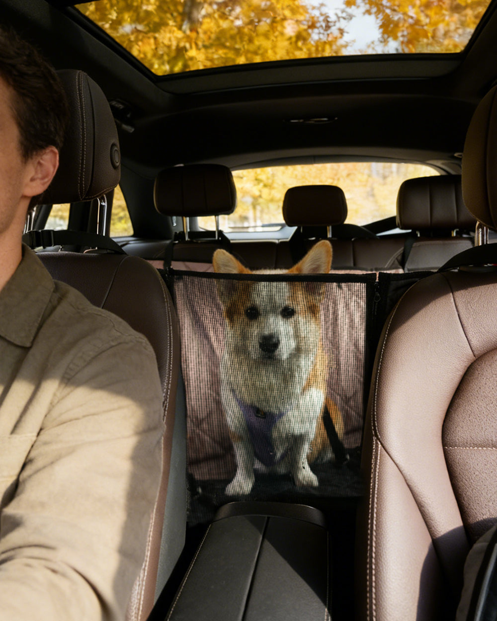 A dog car seat extender is a travel accessory that creates extra, stable space between your car’s front and back seats. It gives your dog more room to lie down, sit, or move comfortably during car rides.