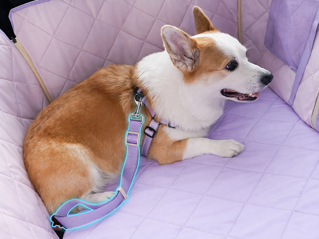 Features a convenient velcro opening that exposes your car’s built-in seat belt buckle. Pair it with the included pet safety leash to securely attach your dog to the car’s buckle, helping limit sudden movement during braking or turns while keeping your pet comfortable and calm.