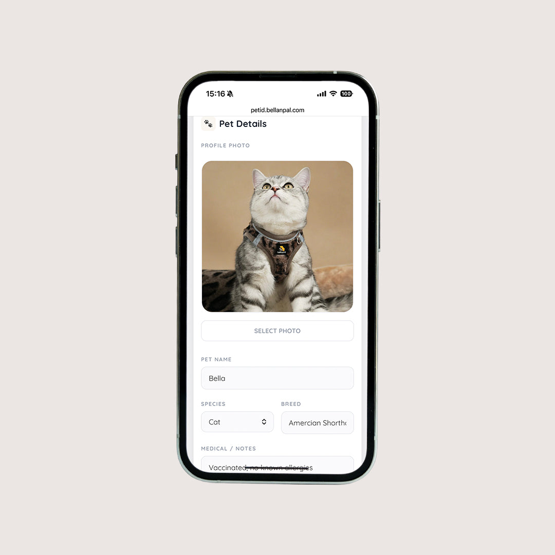 Anyone with a smartphone can scan the QR code and instantly view your pet’s profile.